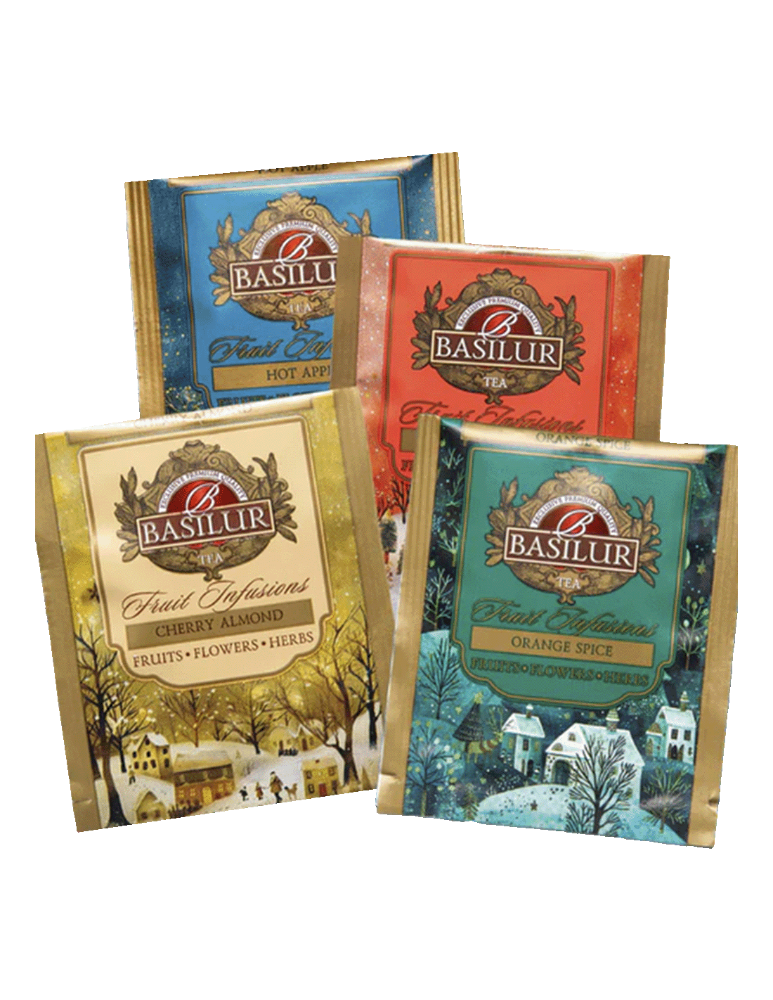Maximice su stock de temporada con el Set Regalo Fruit Infusions Festivo. Un set de lujo de 4 infusiones de frutas 100% sin cafeína, esencial para la venta en tiendas gourmet y regalos corporativos.