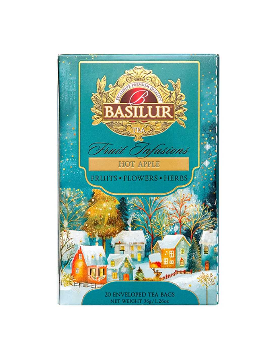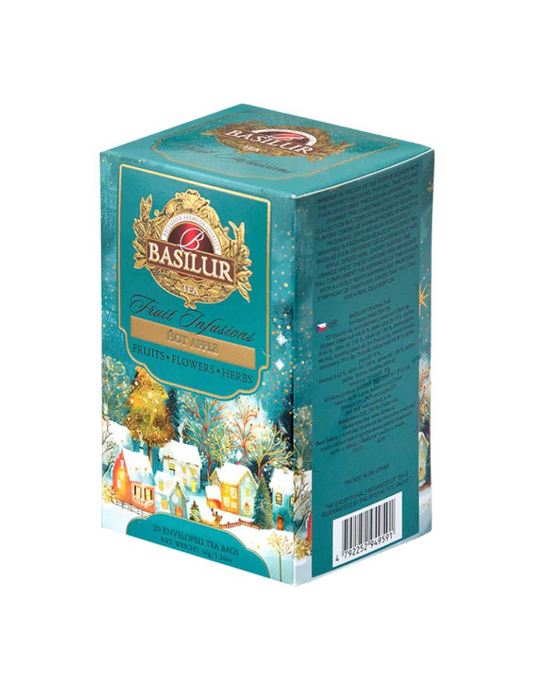 "Hot Apple de BASILUR es la taza que estabas esperando para la temporada de frío. Esta infusión afrutada y descafeinada captura la magia de las celebraciones invernales con un sabor que evoca directamente una tarta de manzana recién horneada.
